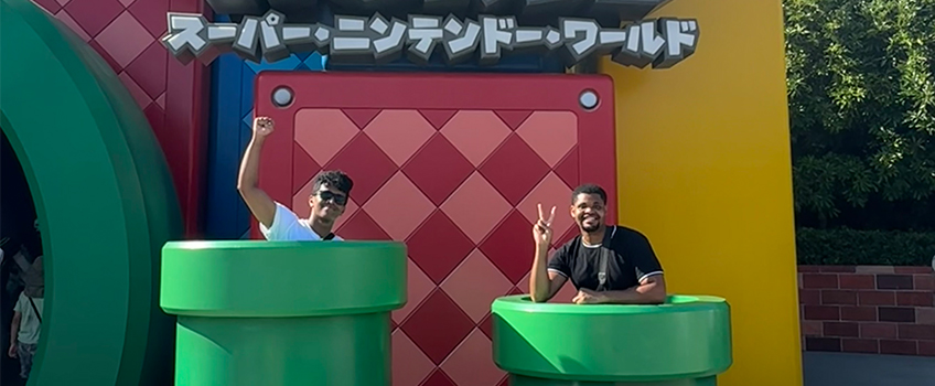 Abu Shahariah and Avery Garlic applied for and received the Benjamin A. Gilman Program last fall, which enabled them to study abroad in Japan for the summer. Here they are at Nintendo World.