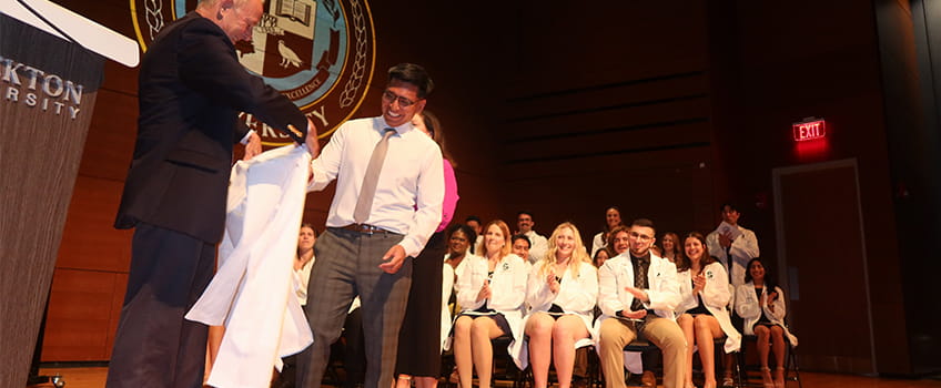 Future physical therapists made an official commitment to the profession in a white coat ceremony in the Campus Center Theatre on Wednesday, April 3.