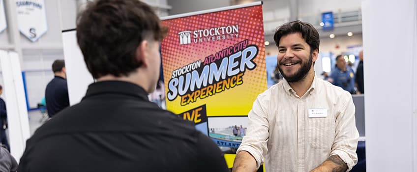 Marsha McCarthy, a 1991 Liberal Studies graduate living in Ocean City, has worked in higher education for 25 years and has been teaching within Stockton's Business program since January. She praises Stockton and the biannual Career and Internship Fair, saying, “Stockton does it best when it comes to career fairs. Students who come will be in great shape after spending a couple of hours here.”
